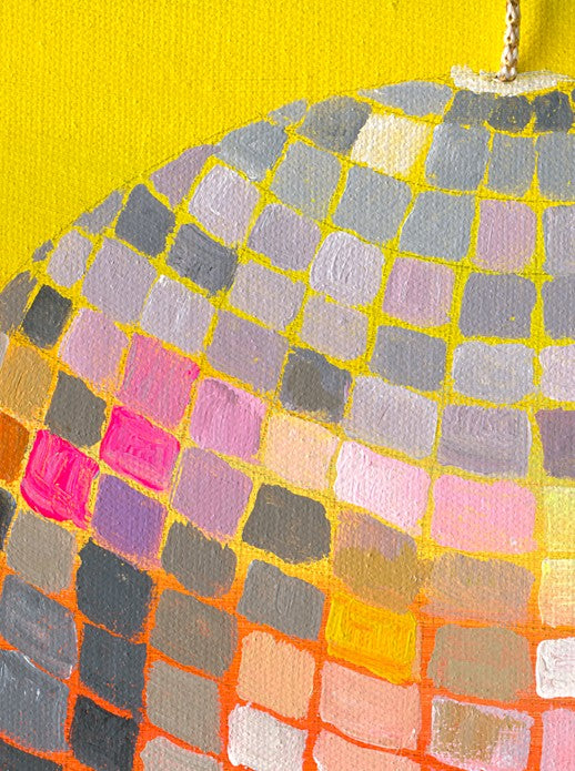 Bringe deine Träume mit DISCO DREAM zum Tanzen! Die strahlenden Neonfarben und die Discokugel, die mit Acrylfarbe auf der 60x80 cm großen Leinwand gemalt wurde, nehmen dich auf eine Reise mit. Lass dich von der motivierenden Stimmung verzaubern und wandle deine Träume in lebendige Realität um!