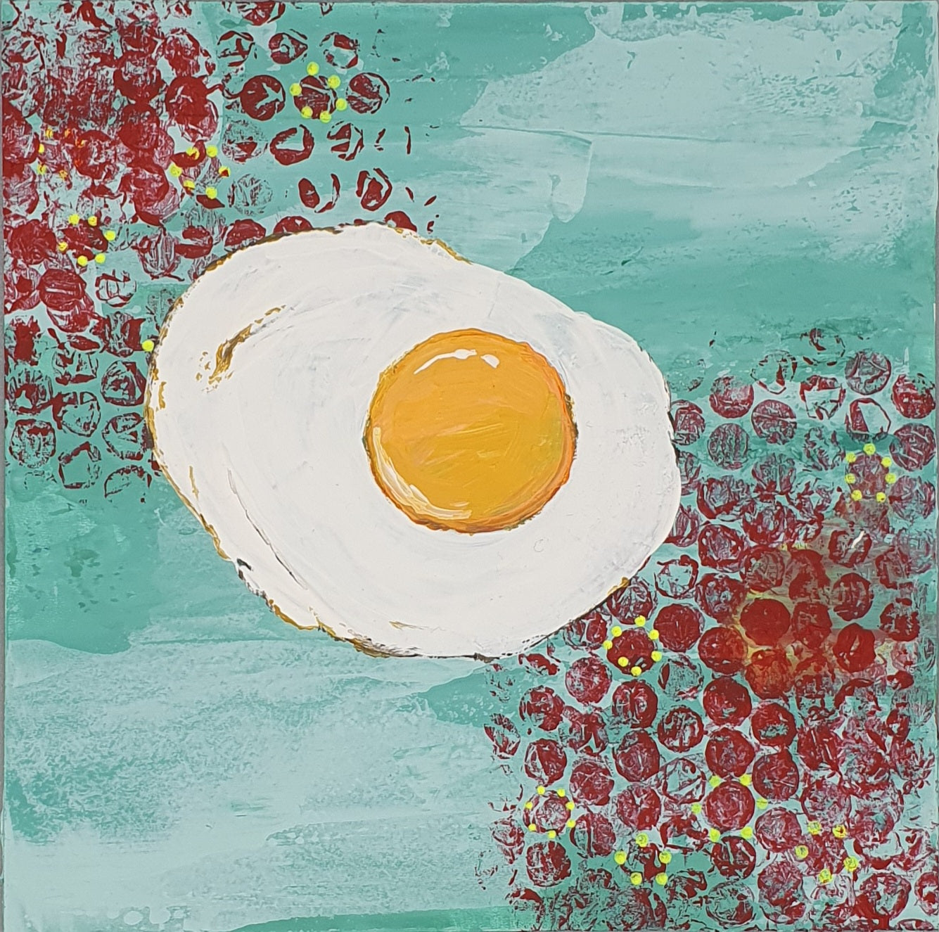 Jedes EI ist ein liebevoll von Hand gemaltes Unikat – keine Drucke, kein Abklatsch. Dieses besondere Kunstwerk gibt es genau einmal auf der ganzen Welt, mit Acrylfarben auf einer 20x20 cm großen HDF-Malplatte.